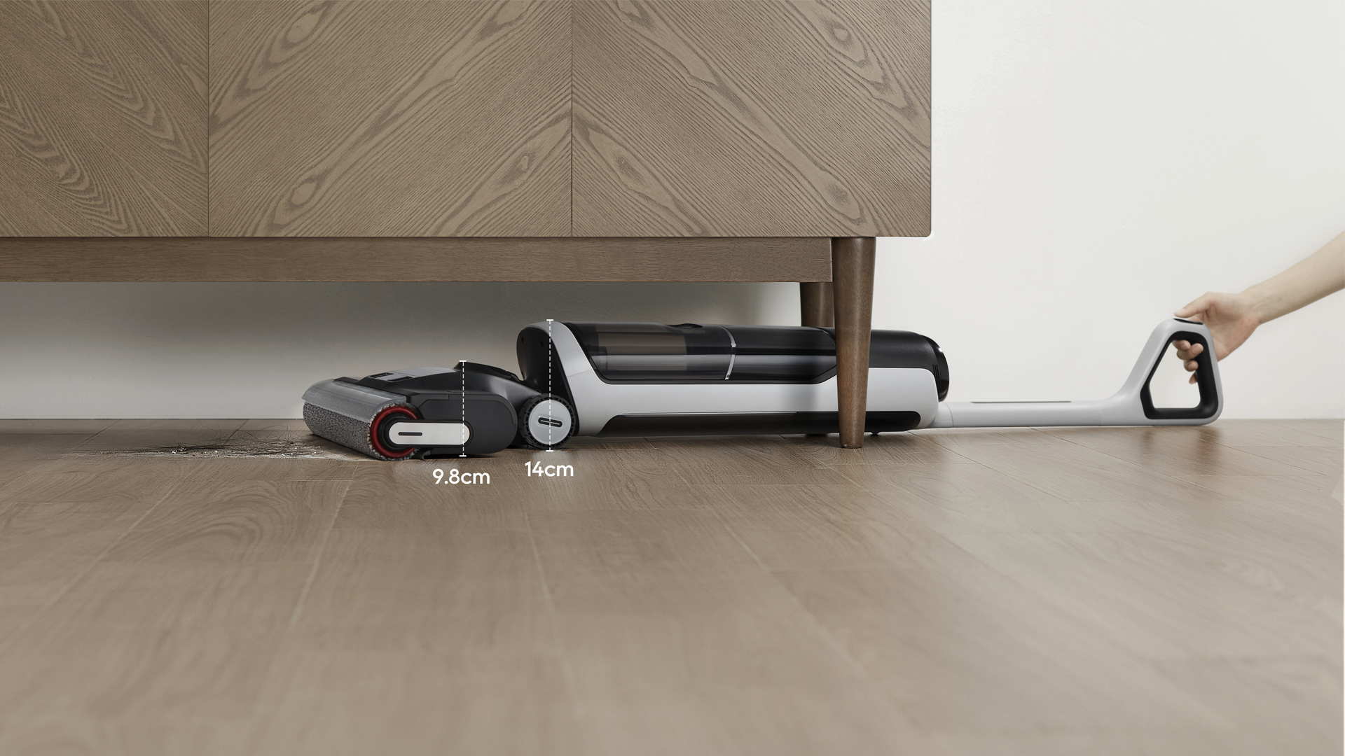 Hilangkan kotoran basah, debu, serpihan, rambut, tumpahan, dan kotoran dengan penggosokan yang kuat dan pengisapan yang kuat 20,000Pa dan smart cleaning teknologi